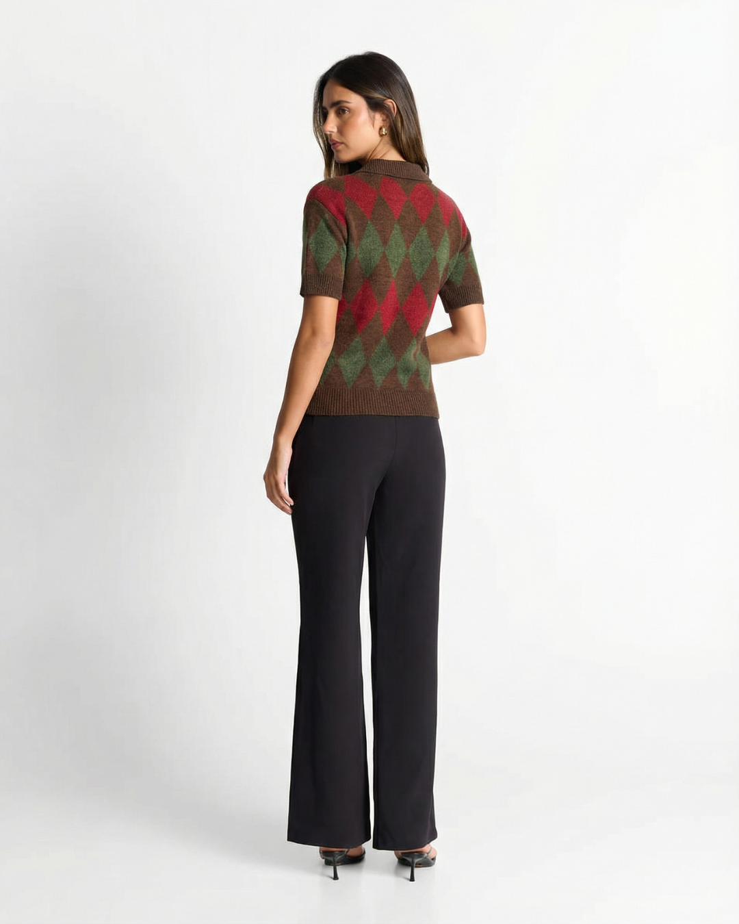 Meet the MeandMio Eleanor | Brown Heritage Argyle Knit Cardigan.
