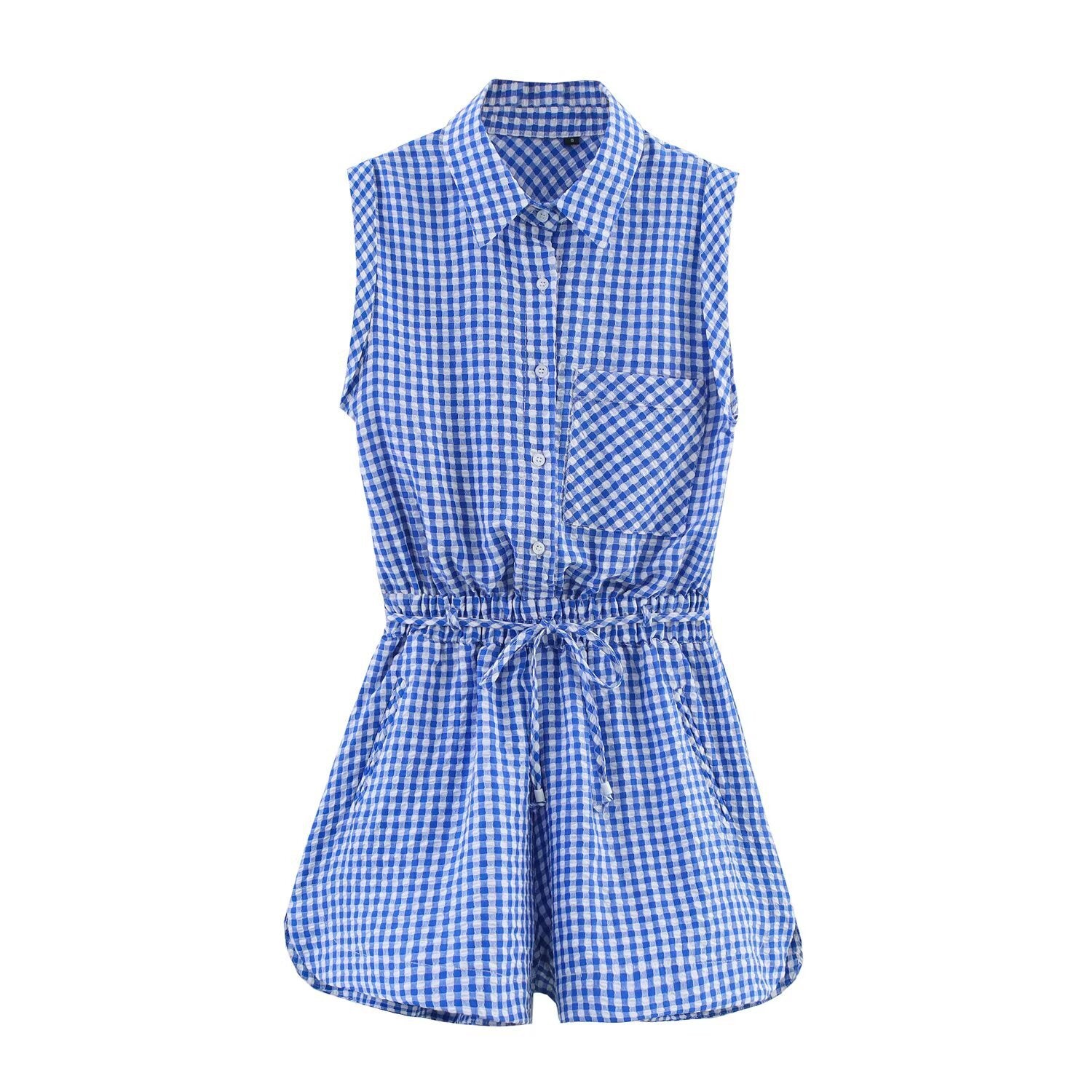 Fleur | Casual Checked Shirt Romper Blue White Gingham