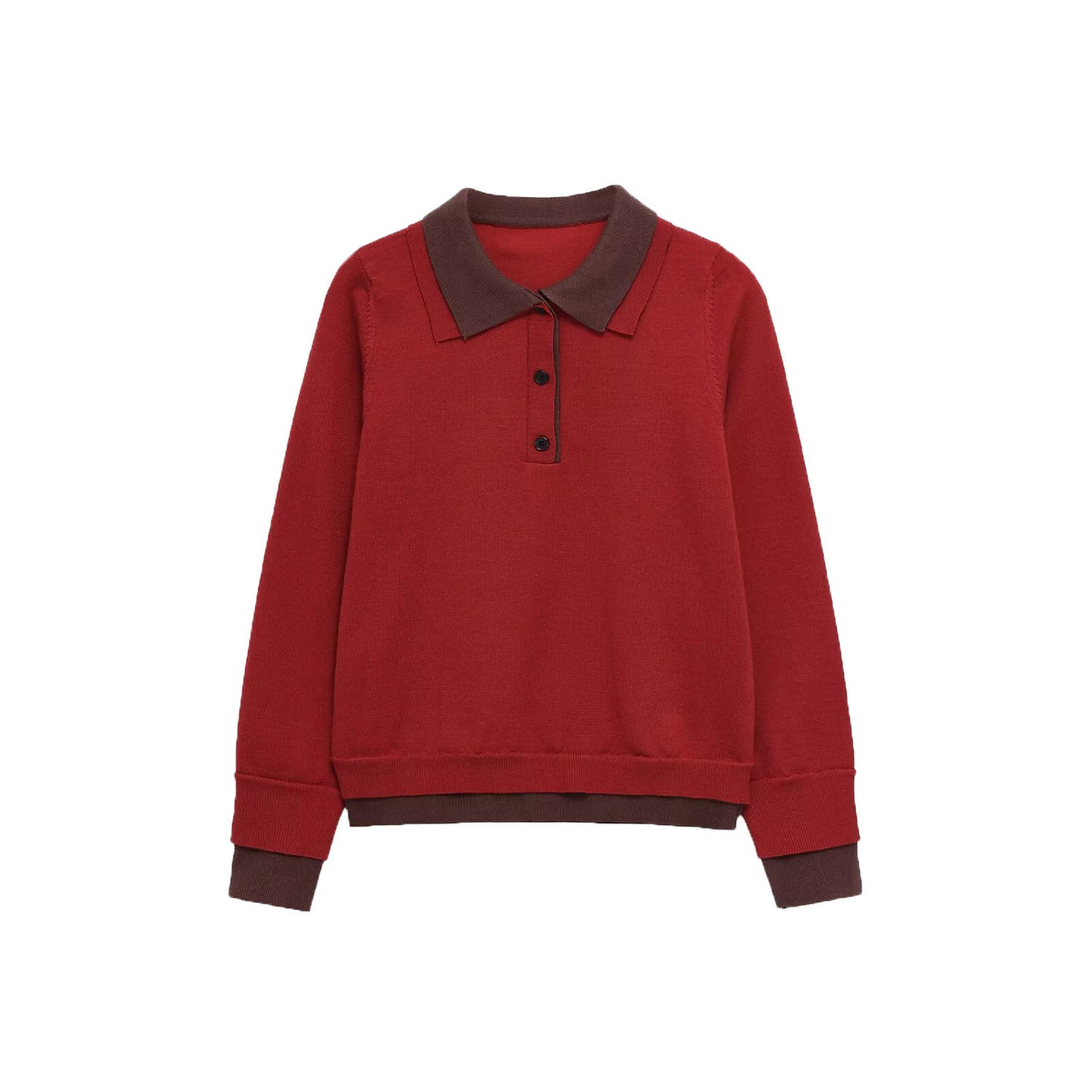 Meet the MeandMio Hazel | Red Knit Long Sleeve Polo Jumper with Contrast Collar.