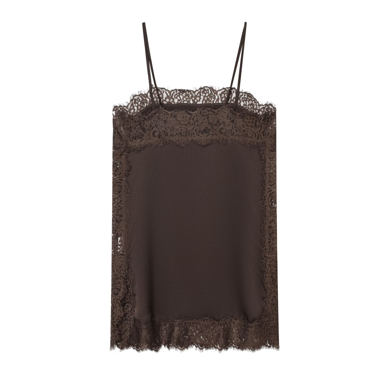 Introducing the MeandMio Lena | Elegant Lace Cami Top Brown Satin Sleeveless Vest.