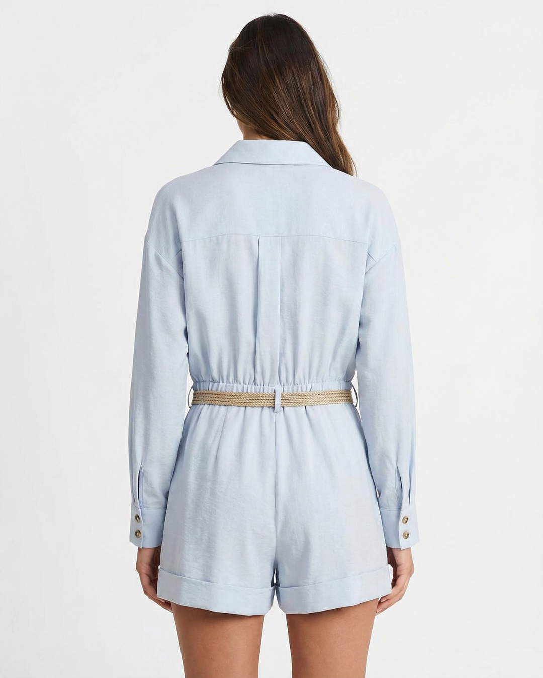 Kira | Casual Shirt Jumpsuit Light Blue Long Sleeve Belted