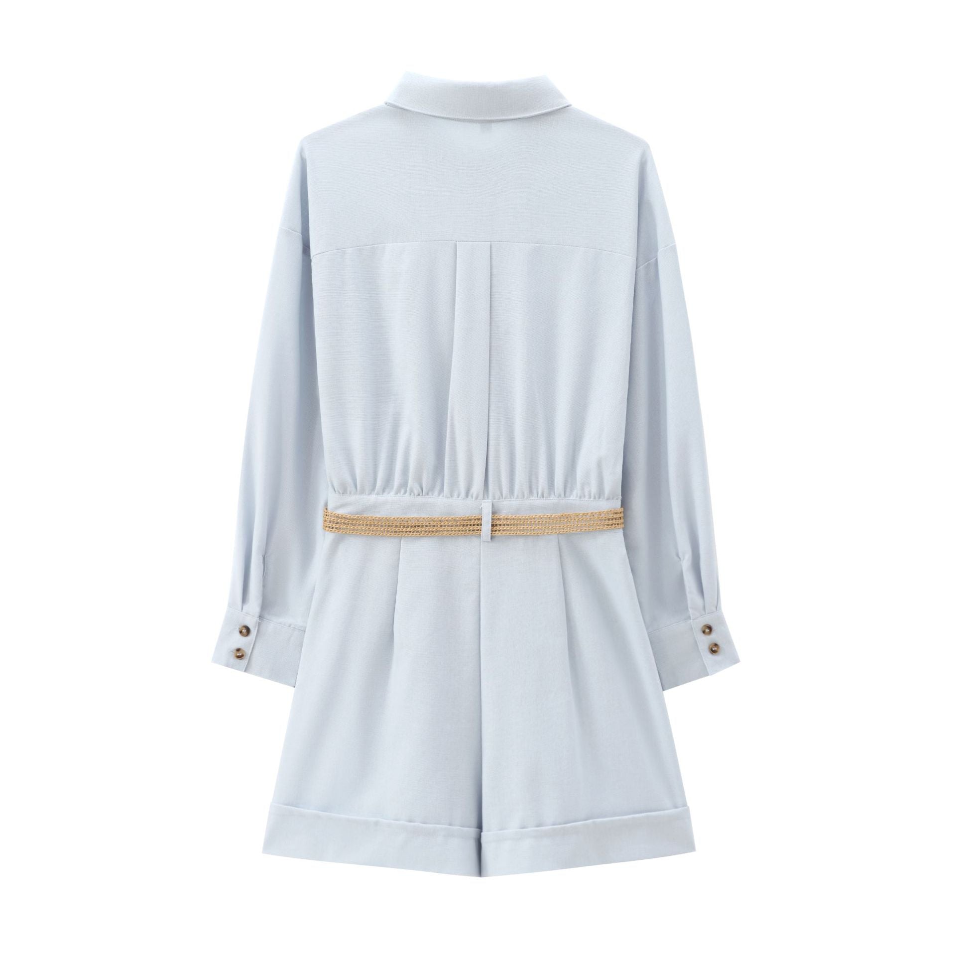 Meet the MeandMio Essential Rope-Belt Shirt Dress - Light Blue.