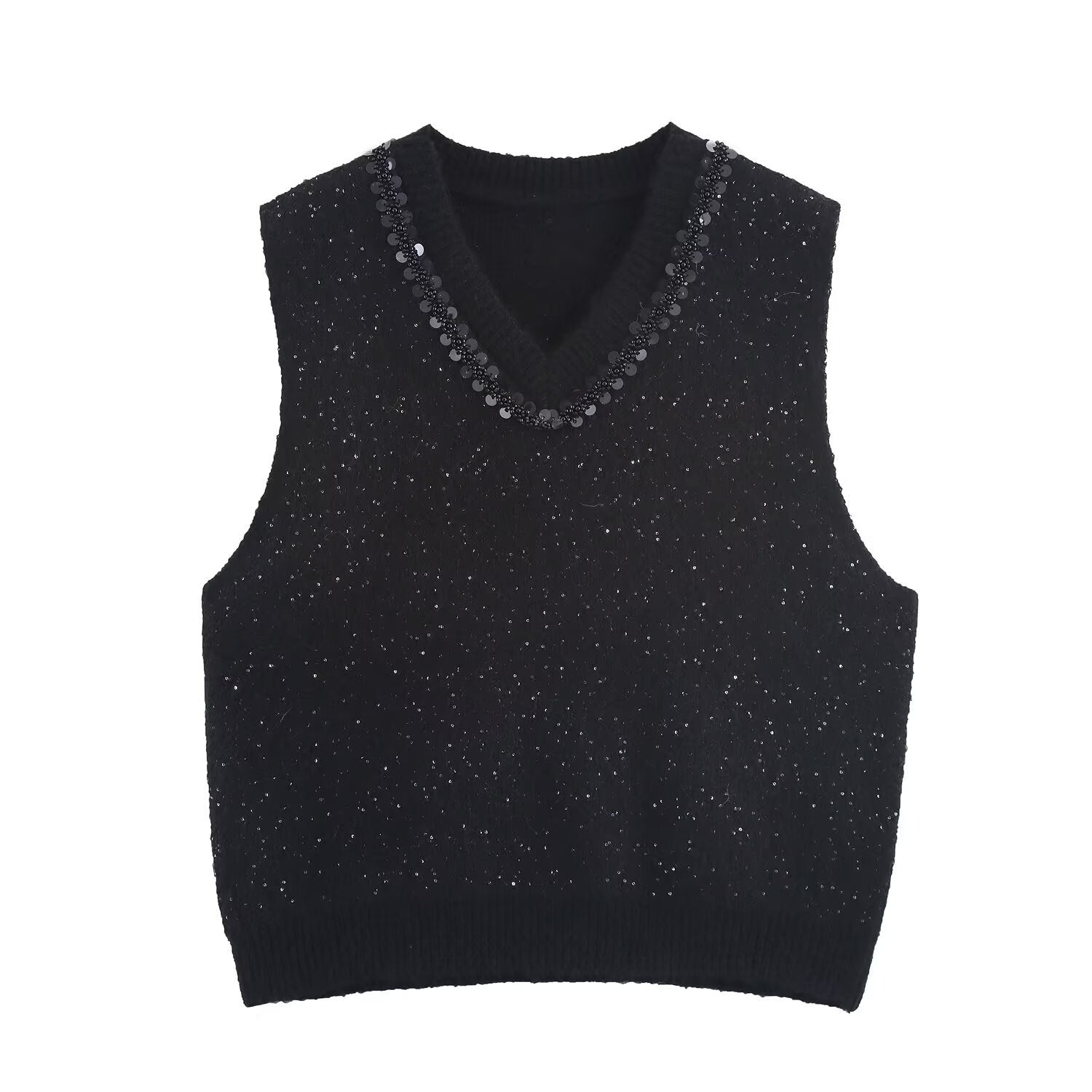 Meet the Edge Rhinestone Sequin-Trim Vest Top. A sleek knit piece that adds just the right amount of shine to elevate your look instantly.