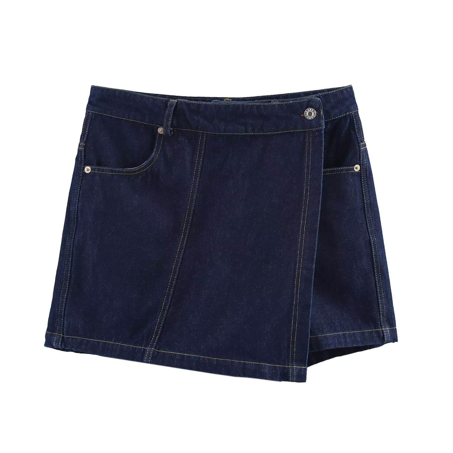 Meet the MeandMio Vintage Wrap-Denim Skort - Dark Blue.
