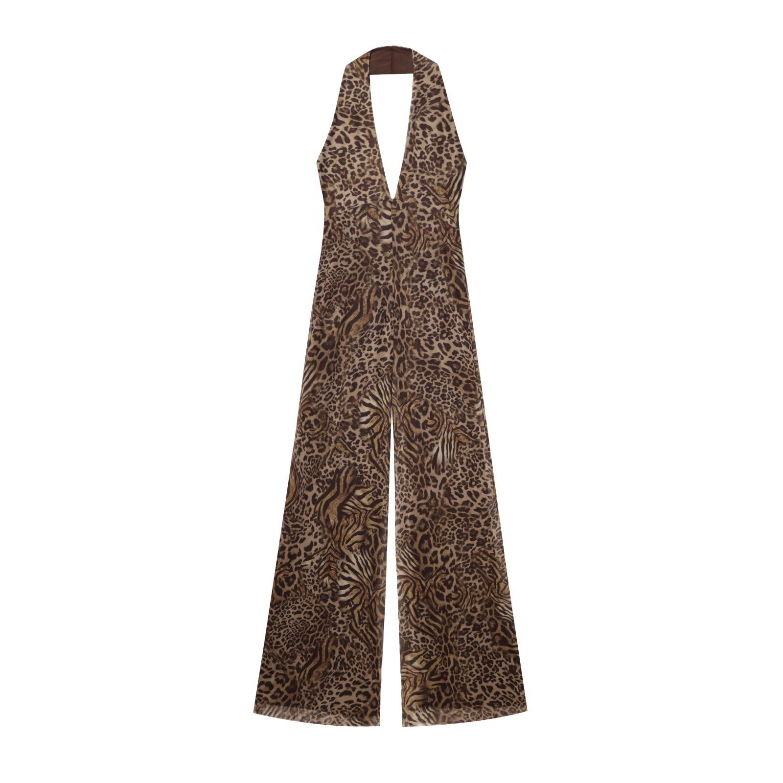 Margot | Leopard Print Jumpsuit Brown Halter Neck Wide Leg