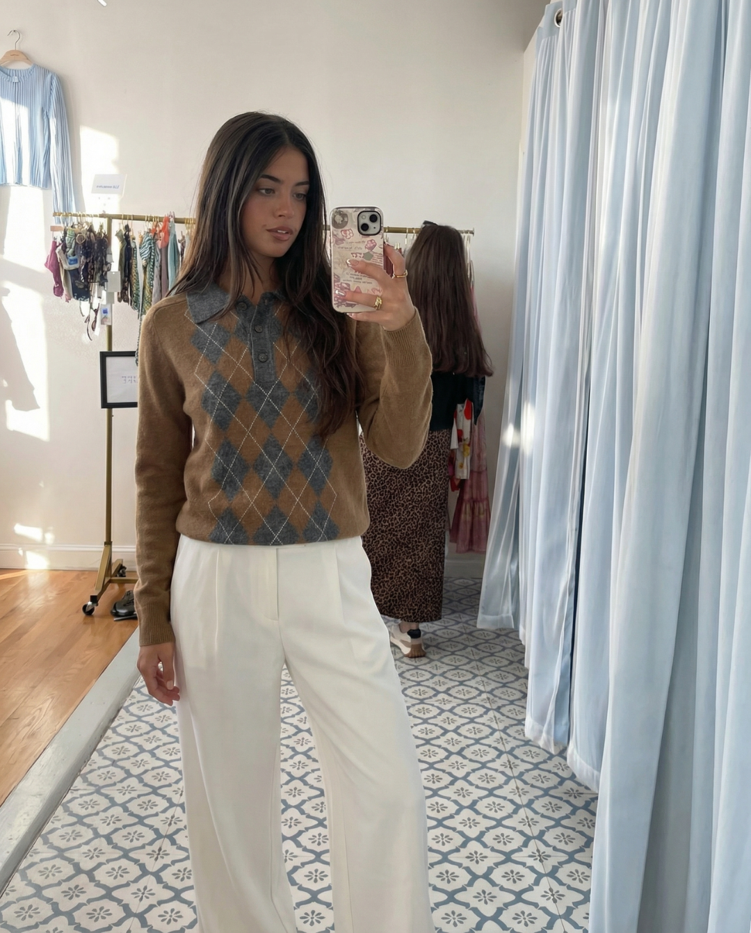 Meet the MeandMio Millie | Brown Argyle Knit Polo Jumper.