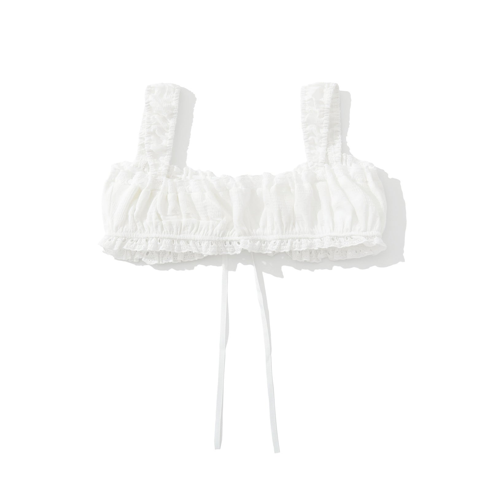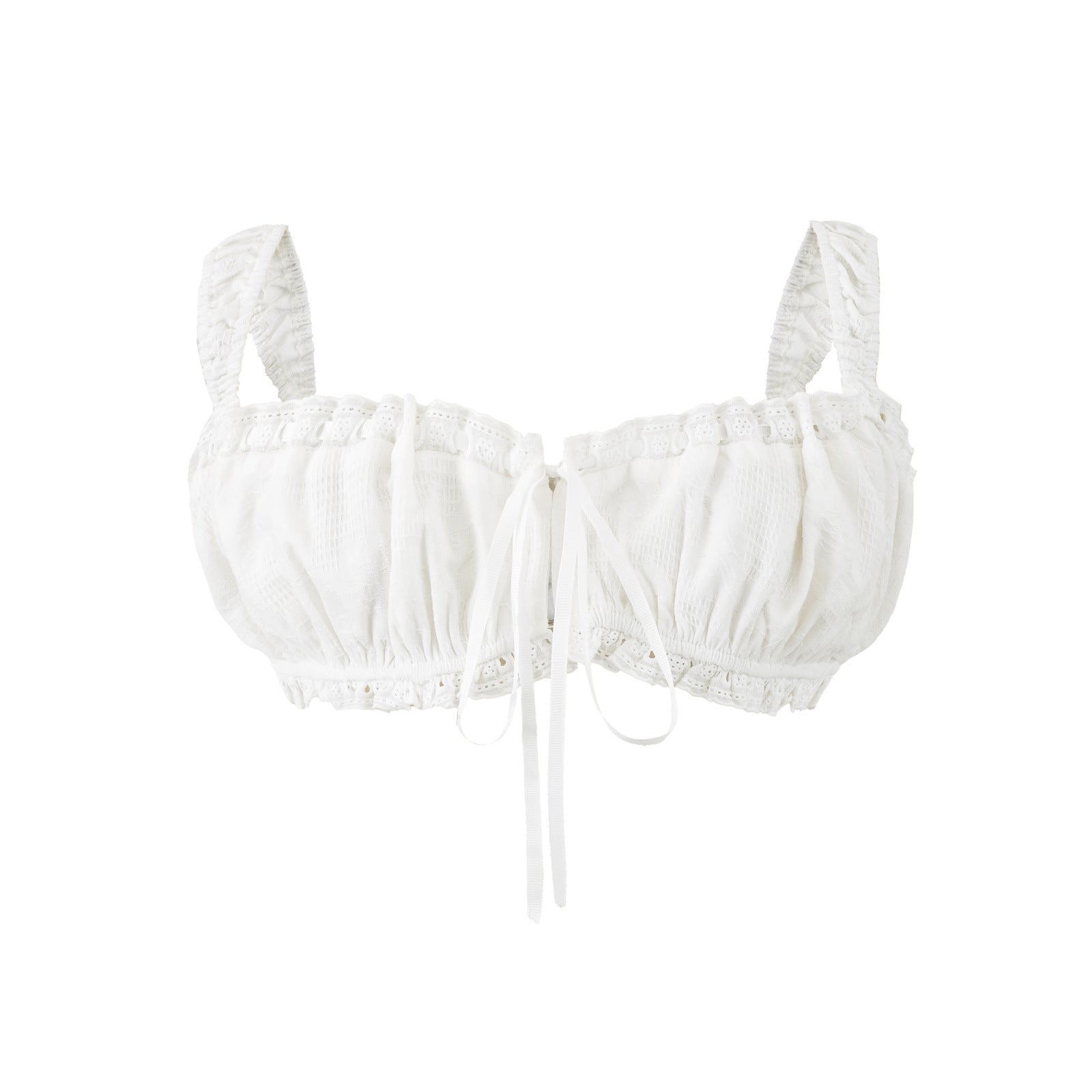 Introducing the MeandMio Isla | Summer Lace Crop Top White Tie Front Ruched Bralette Cami.