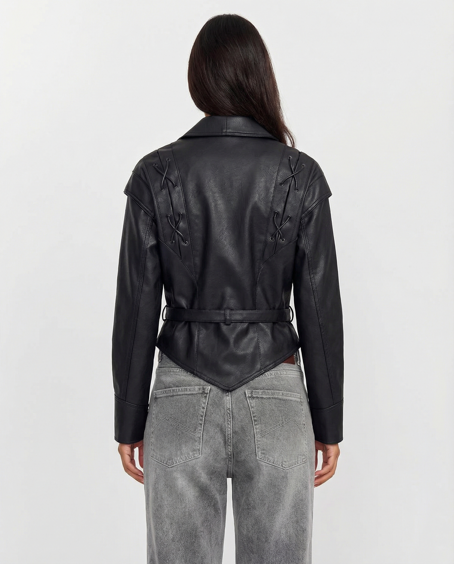 Until now. Meet the MeandMio Edge Belted Leather Jacket – Black.