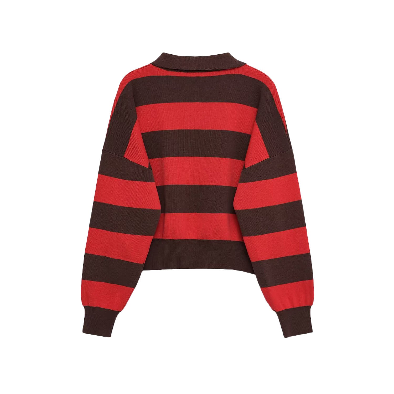 Meet the MeandMio Phoebe | Red Cosy Striped Knit Polo Jumper.