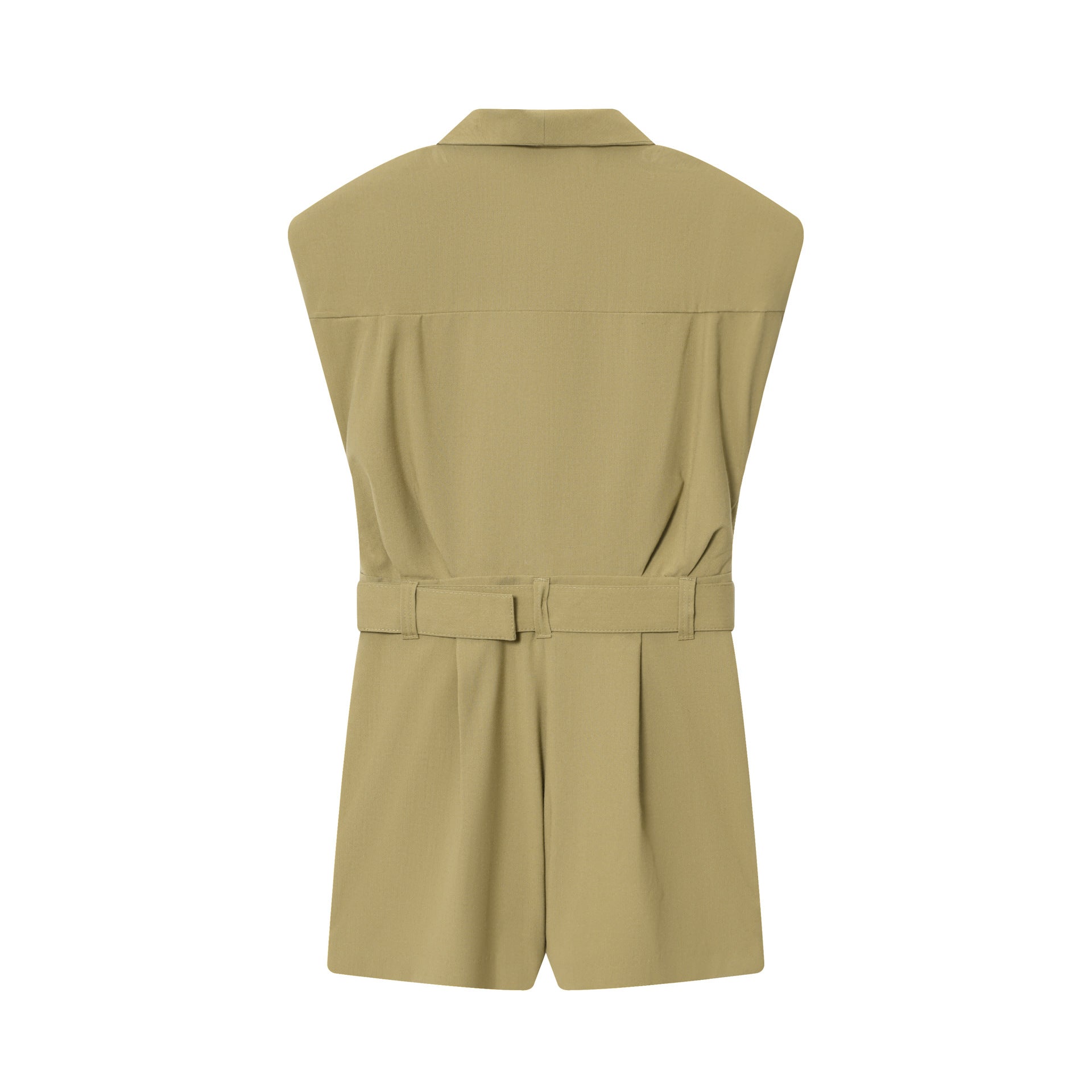 Quin | Elegant Belted Utility Shorts Jumpsuit Khaki