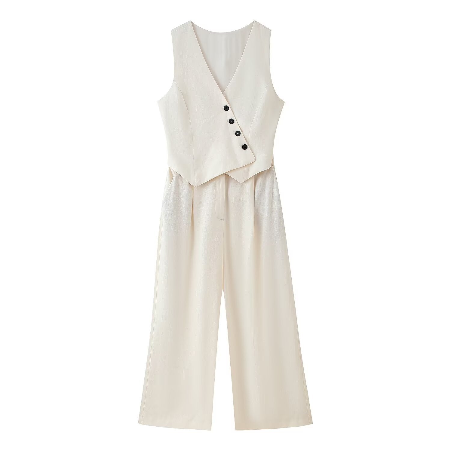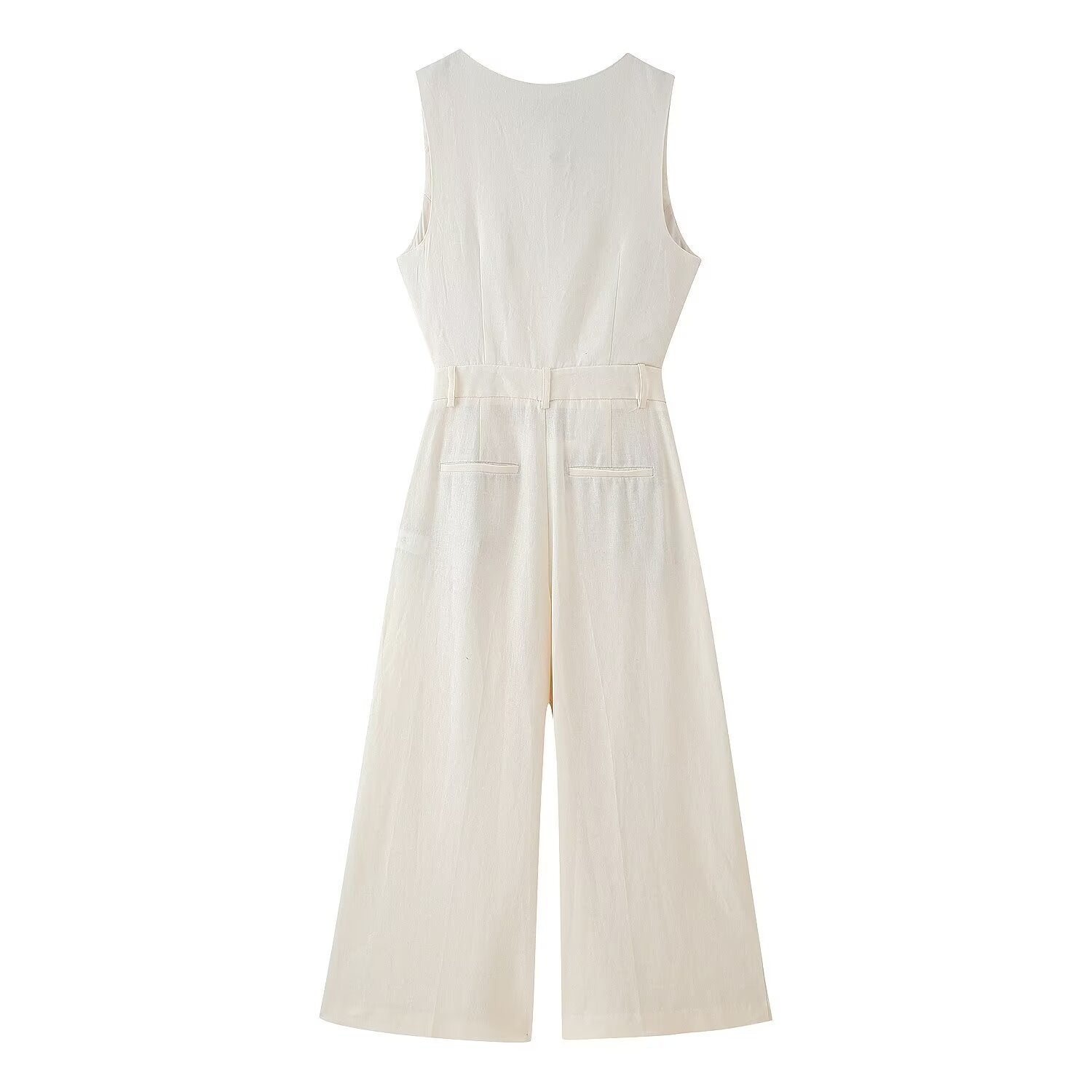 Meet the MeandMio Luxe Tailored-Waistcoat Jumpsuit - Cream.