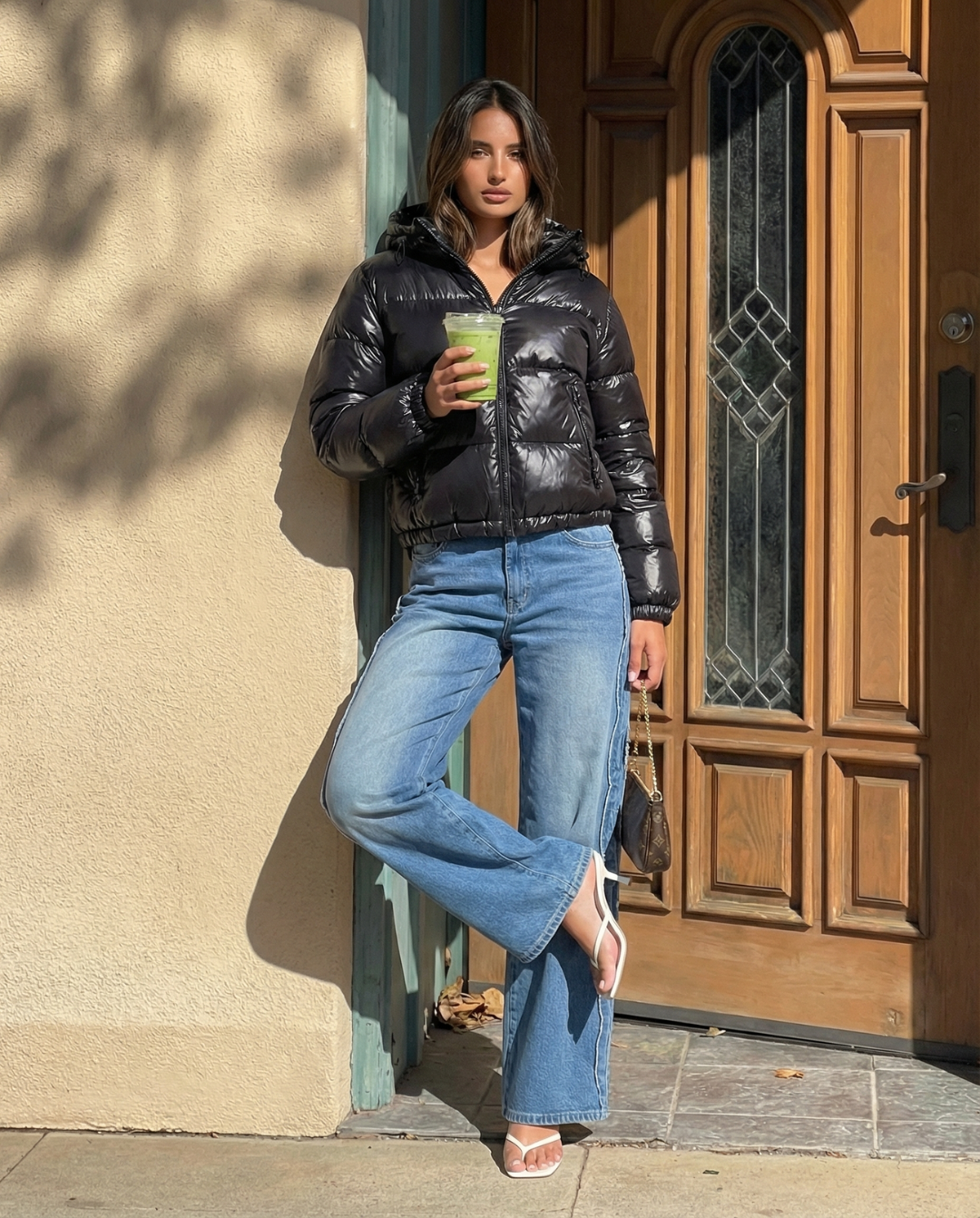 Until now. Meet the Meandmio Urban Glossy Hooded Puffer Jacket in Black or Army Green.